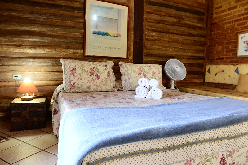 O Chalé oferece acomodação cercada pela natuteza, com vista para o lago do Hotel. Acomoda até 6 pessoas e conta com TV, frigobar e ventilador de teto.